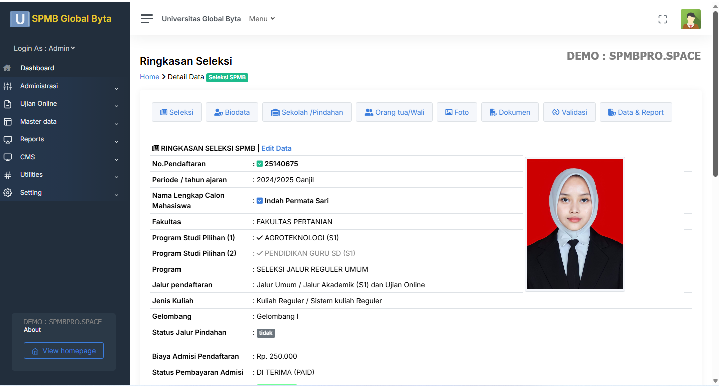 Pendaftaran dilakukan secara online dan kampus akan terlihat profesional.